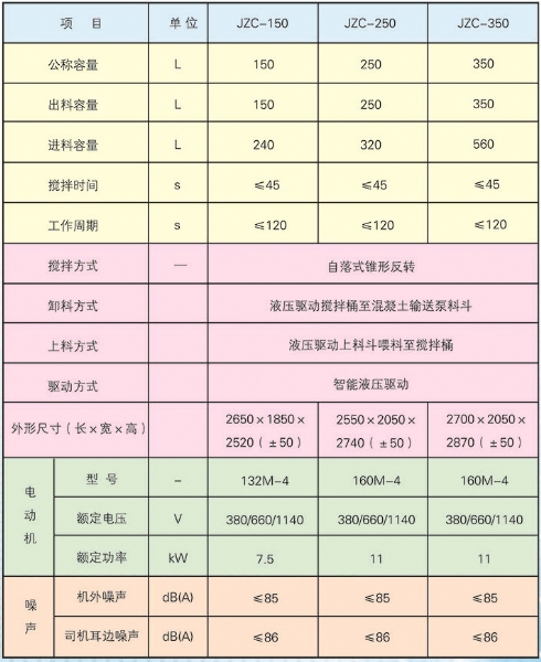 本機設(shè)計合理,使用方便、安全可靠,具有生產(chǎn)效率高,攪拌質(zhì)量好、能耗低、易損件壽命長等特點,本機適用范圍廣,不僅能攪拌塑性和干硬性混凝士,還可攪拌輕骨料混凝土及各種砂漿等。